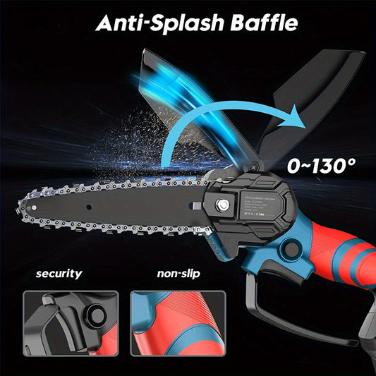 Mini-Kettensäge, 15.24 cm, Akku-Kettensäge mit 2 Akkus, 2 Ketten, 21 V, tragbare elektrische Handkettensäge zum Baumschnitt/Zweige-/Holzschneiden, Blau