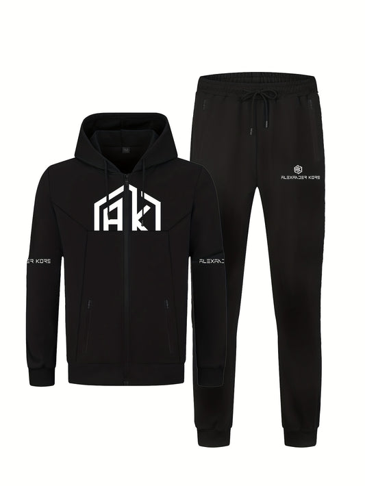 2-Teiliges Herren Sport-Trainingsanzug Set - Weicher Fleece-Hoodie und Jogginghose für Fitnessstudio, Freizeit und Alltag - Bequeme Passform, Frühlings/Herbst Outfit mit Schriftzug, Stilvoll und Atmungsaktiv