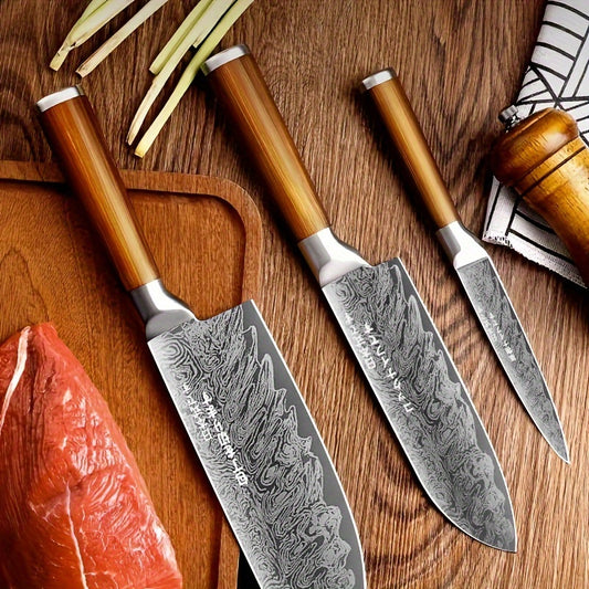 4-teiliges Damastmesser-Set, lebensmittelechtes Küchenmesser-Set, ultrascharfes Profi-Kochmesser-Set, Küchenmesser, Obstmesser, Fleischermesser, Knochenhackmesser, Wohnungszubehör, Küchenhelfer, günstigste Artikel