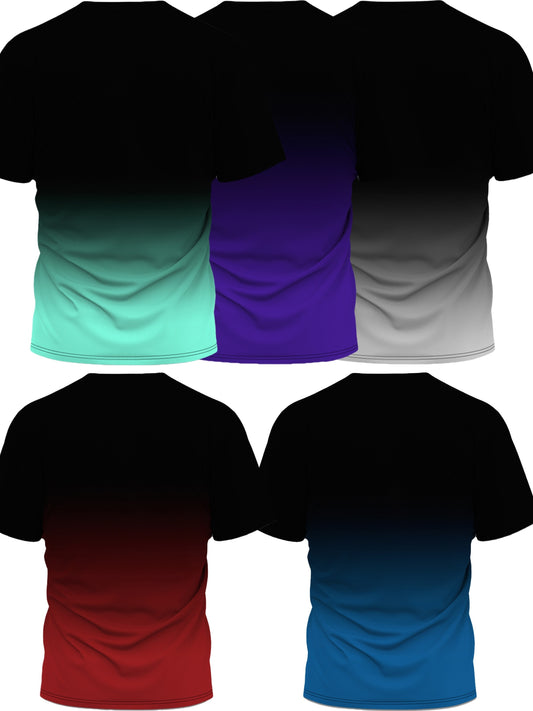 5er-Set Herren-T-Shirts mit Farbverlauf - Lässige Rundhals, Kurzarm-Tees für den Sommer im Freien