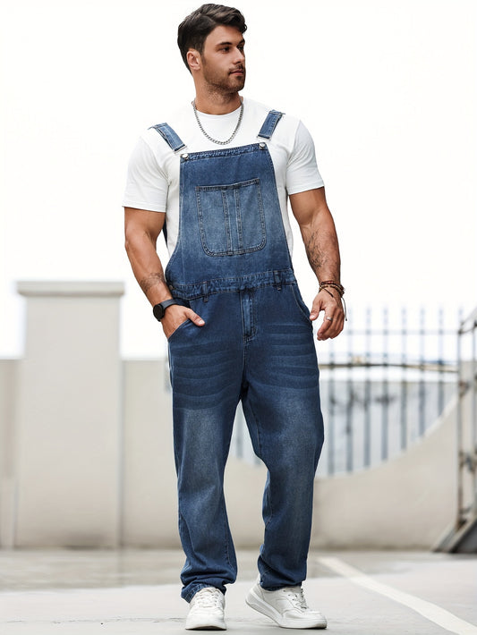 Jeans-Overalls für Herren in Übergröße, lässige Latzjeans mit lockerer Passform und großen Taschen, strapazierfähige Arbeitskleidung, modische Streetwear, verstellbare Träger, bequemes Tragen für den ganzen Tag