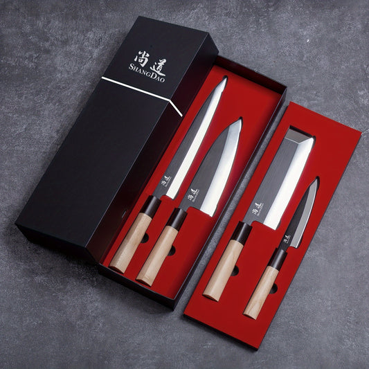 Japanisches Küchenchef-Messerset, 4-teiliges Sushi-Messerset - 25 cm Yanagiba - 13 cm Allzweckmesser, Fischfiletiermesser-Set, deutscher Stahl mit Geschenkbox