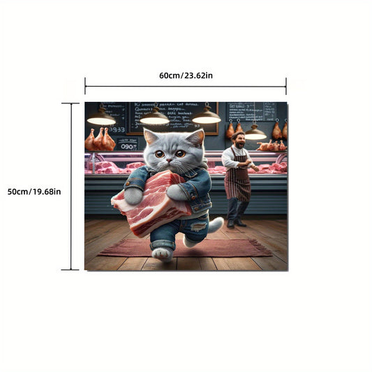 JIT 1PC Polyester Katzenfuttermatte mit fleischliebendem Katzen-Design, rutschfest, wasserabsorbierendes Haustierfutter- und Wassernapf-Pad für Katzen, leicht zu reinigende Haustierplatzmatte