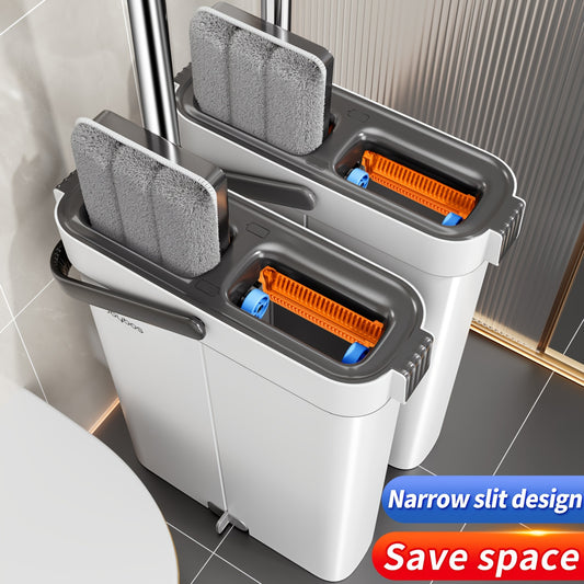 Joybos Dual-Use Flachmopp und Eimer Set mit Edelstahlgriff - 33cm breite Mikrofaserpads, platzsparendes Design für Nass- und Trockenreinigung in Wohnzimmer, Schlafzimmer, Badezimmer, Küche - kein Strom benötigt