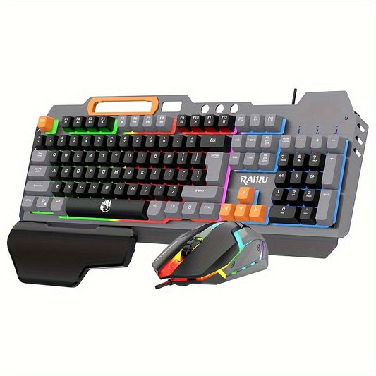 Kabelgebundenes Tastatur- und Mausset mit Block in drei Farben, mechanisches kabelgebundenes Gaming-Tastatur- und Mausset mit optischer Hintergrundbeleuchtung für Gaming/Büro/Laptop