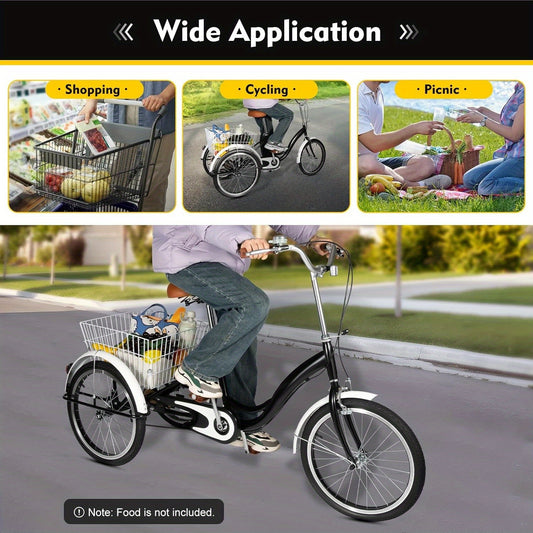 KumuJ Dreirad für Erwachsene 20 Zoll, 3-Rad-Fahrrad mit Einkaufskorb, Dreirad für Erwachsene und Senioren, Schaltungsdreirad für Erholung, Einkaufen, Picknicks, Reisen (Schwarz)
