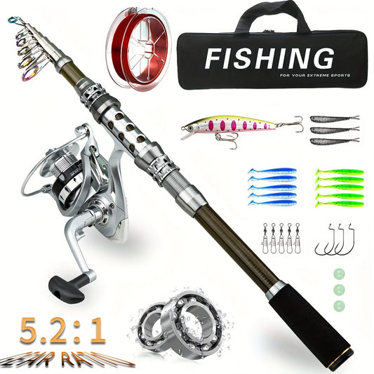 Komplettes Carbonfaser-Spinnruten- & Rollen-Kombi-Set - Teleskopisch, Mittlerer-Leichter Kraft für Süß- und Salzwasserangeln