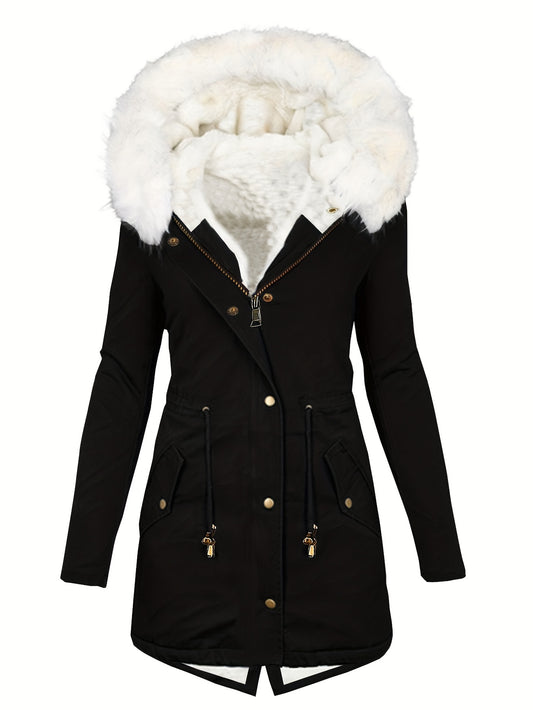 Kuschelige Fleecegefütterte Kapuzenjacke - Warm, Langärmlig, Mittellang, Flauschig, Reißverschluss, Lässige Winterjacke - Bequeme Damenbekleidung für kaltes Wetter