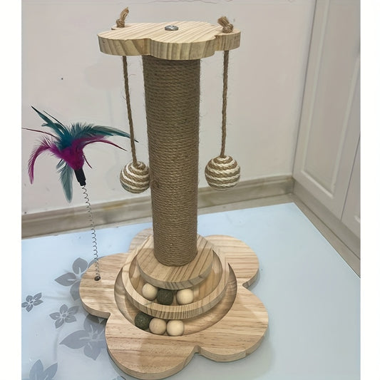 Kratzbaum Mit Hängendem Ball, Massivem Drehbarer Kratzbaum, Interaktives Spielzeug, Heimtierbedarf