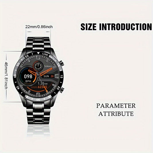 LIGE Herren Wasserdichte Smartwatch mit Voll-Touchscreen, Sportaktivitäten-Tracking, Stahlarmband und Anrufverwaltung - Ein Stilvolles Fitness-Geschenk