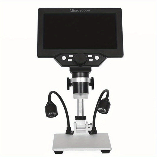 LIXADA G1200 Digitales Mikroskop, 17.78 cm großer Farbbildschirm, großes LCD-Display auf der Basis, 12 MP, 1–1200-fache Lupe mit kontinuierlicher Verstärkung, mit Ständer aus Aluminiumlegierung und zwei Fülllichtern