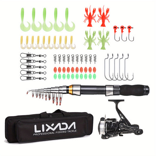 Lixada Angelrute Rollen Combo Komplettset mit 2.1 m 2.3 m Teleskop-Angelruten 2 Stück Spinnrollen-Set mit Haken, weichen Ködern, Laufwirbeln, Aufbewahrungstasche