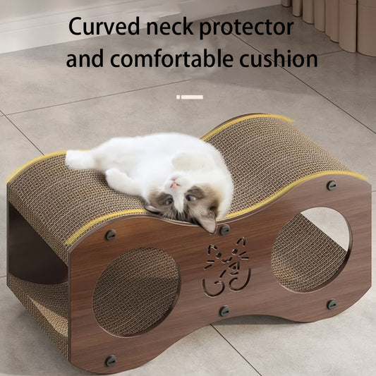 [Trendend] Walnussholz Katzenkratzlounge - Langlebig, Nicht-Fellendes Gewebtes Nest mit Integriertem Kratzpad - Ganzjahres Gemütliches Katzenbett & Spielsofa