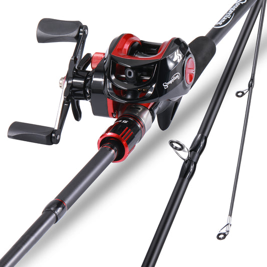 Angelrolle-Set mit Baitcasting, 24T Carbon Fiber Angelrute und 12+1BB 8.0:1 Übersetzungsverhältnis Baitcasting-Rolle, mit 100mPE Angelschnur und Ködern