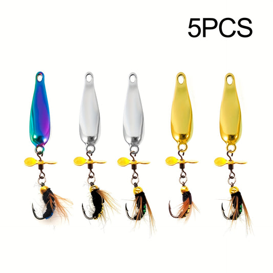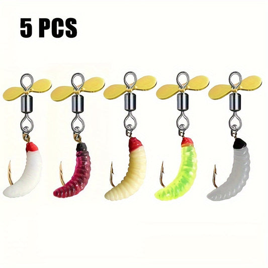 5 Stück, bunte Köder mit glitzernden Propellern zum Angeln, Wurmköder zum Forellen- und Barschangeln, diese Köder imitieren Insekten und Würmer, perfekt zum Kunstköderangeln