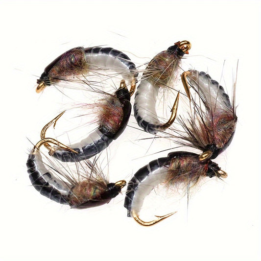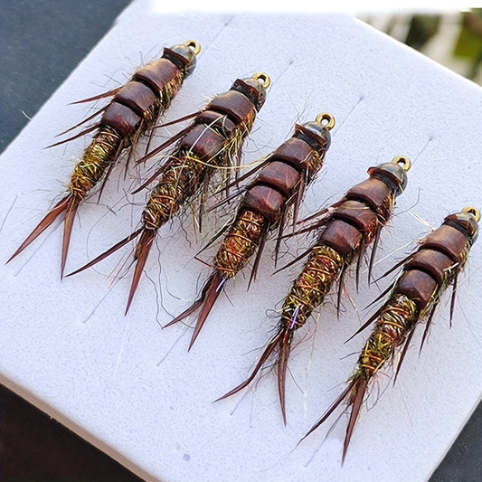 6 Stück Lebensechte Steinfliegenlarven Kunstköder - Realistisches Design, Langsam Sinkend, Größe 10, Ideal für Süß- und Salzwasserforellenangeln, Robuste Kohlenstoffstahlkonstruktion, Perfektes Angelzubehör für Angler