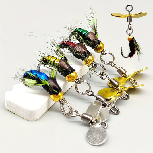 5 Stück Premium Bionische Insekten Spinner Köder mit Glitzer - Hochsichtbare Künstliche Hartköder für Lachs & Forelle - Robuste Angelzubehör, Ideal für Süßwasserabenteuer