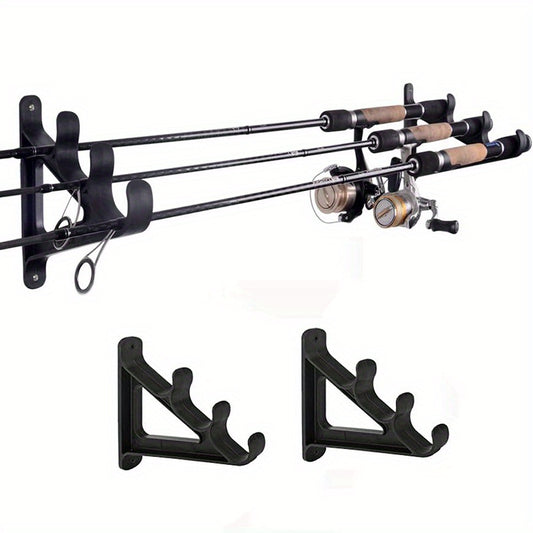 Platzsparender Wandmontierter Angelrutenhalter mit Haken - Für 3 Ruten, Ideal für Wanderstöcke, Skistöcke & Mehr - Langlebiges ABS-Material, Einfache Installation