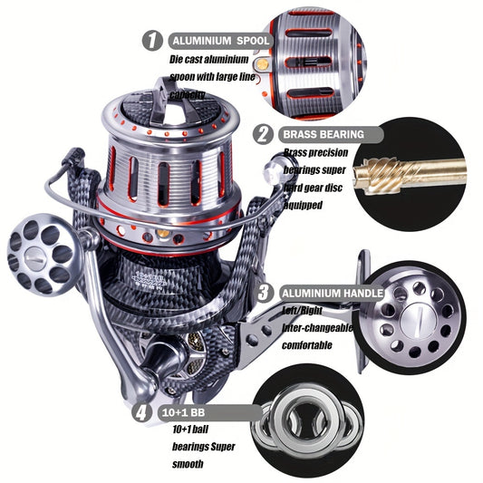 Samolla Salzwasserfeste Angelrolle - Hochleistungs-10+1-Kugellager-Design mit Metalllagern, Ultra-starke Größe 8000-12000, 25kg Bremskraft für nahtloses Großfisch- und Karpfendrehen, Korrosionsbeständig für langlebige Abenteuer