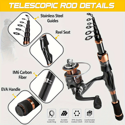 PLUSINNO Eagle Hunting VII Teleskop-Angelrute & Rollen-Combo - 24T Kohlefaser, Tragbar für Reisen, Salzwasser & Süßwasser, Ideales Geschenk für Männer