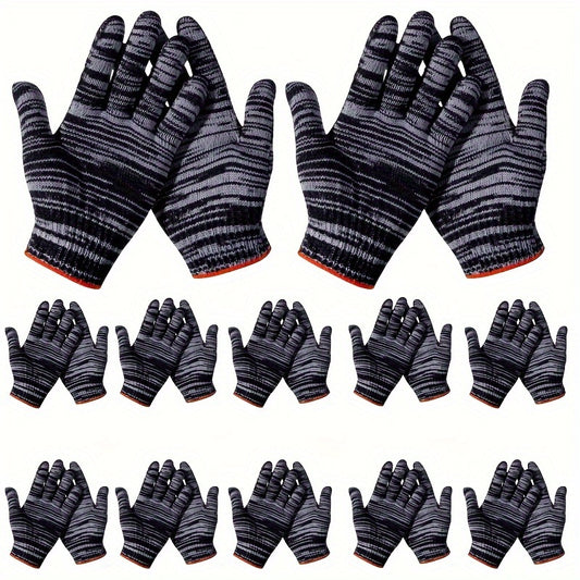 12 Paar Strick-Handschuhe, schwarz-weiß gestreift, langlebig, leichtes, atmungsaktives Material, ideal für Garten, Landschaftsbau, Bau, Renovierung - maschinenwaschbar, blei- und BPA-frei