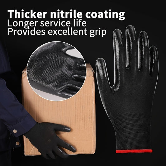 10 Paar Robuste, Langlebige Arbeitshandschuhe mit Nitrilbeschichtung - Vielseitiger Handschutz mit rutschfestem Griff für Bauarbeiten, Fahrzeugwartung und industrielle Aufgaben - Premium-Qualität für langanhaltende Leistung