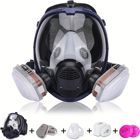 27-in-1 Vollgesichts-Atemschutzmaske mit Aktivkohlefiltern - Wiederverwendbar, Schlagfeste Linse für Industrie, Malerei, Rauch, Dampf, Schweißen, Polieren & Spritzarbeiten