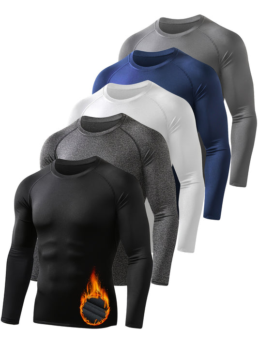 5er-Pack Herren-Thermo-Kompressionsshirt mit Fleecefutter, langärmliges Sportunterhemd für kaltes Wetter und Training