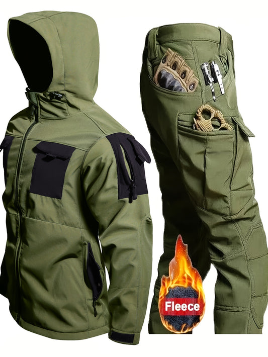 2er-Set Herren Taktischer Kapuzenpullover und Hose - Wind- und Wasserdicht, Atmungsaktiv - Perfekt für Herbst- und Winteraktivitäten im Freien wie Wandern und Camping