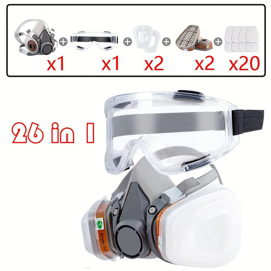 26-teiliges Wiederverwendbares Schutzset: Halbgesichtsmaske & Antibeschlag-Brille für Staub, Dämpfe, Gerüche - Ideal für Malen, Färben, Autosprühen, Schleifen & Schneiden
