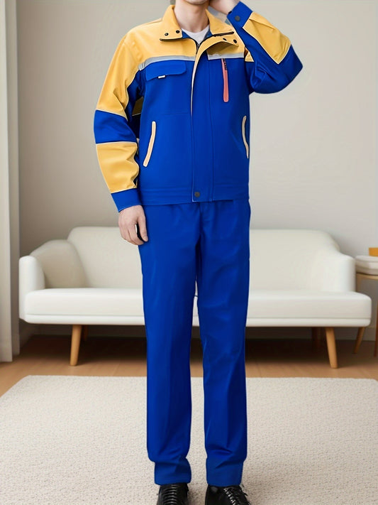 Herren Strapazierfähiges Arbeitskleidungsset, Verstärkte Jacke Und Hose, Lässiger Stil, Modische Frühjahrs-/Herbstuniform, Werkstattbekleidung