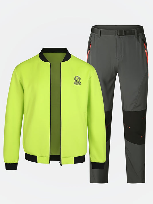 Herren-Polyester-Freizeitanzüge mit Buchstaben-Druck, Baseball-Kragen-Jacke & Hose mit Reißverschluss-Detail - Langarm, leicht elastisches Material für Herbst, Frühling - Tägliches & Wochenend-Freizeit-Outfit (100% gewebter Polyester)
