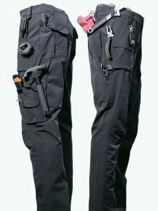 Herren Cargo-Hosen mit Mehreren Taschen - Strapazierfähiges Polyester, Nicht Dehnbar, Einfarbig mit Kordelzugbund für Outdoor- & Holzarbeiten