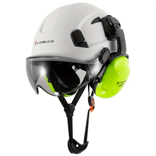 Ultimativer Schutz Bau-Sicherheitshelm Set - Premium ABS-Harz Schutzhelm mit Integrierter Schutzbrille und Geräuschreduzierenden Ohrenschützern für Verbesserte Gehörschutz, Komplettlösung für Industrielle Arbeiter