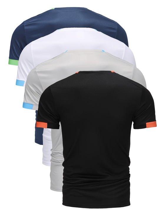 4er-Pack Herren T-Shirts mit geometrischem Muster - Rundhals, Kurzarm, Atmungsaktiv und Bequem - Vielseitig und Stilvoll für Frühling und Sommer - Maschinenwaschbar, Ideal für Laufen, Wandern, Outdoor-Aktivitäten und Freizeit