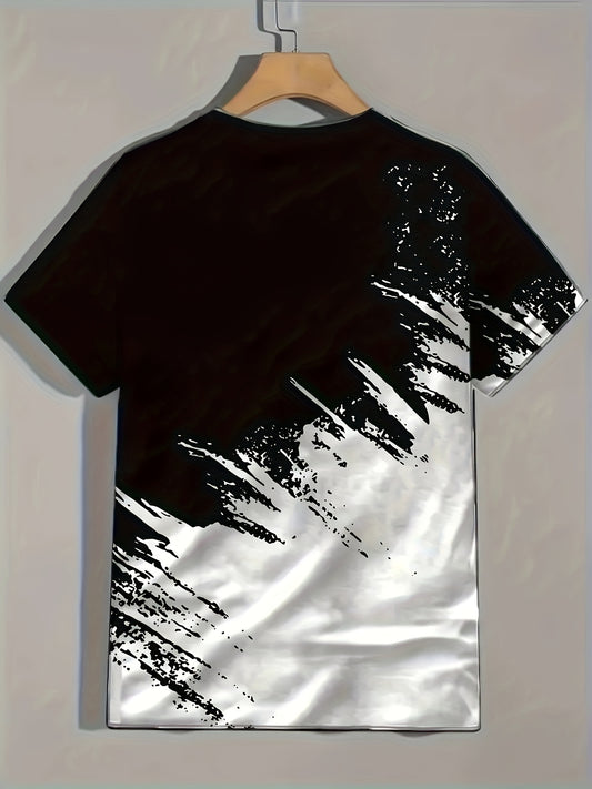 Sommermode für Herren, Rundhalsausschnitt und Kurzarm-T-Shirt mit Leopardenmuster und Kontrastfarben-Paint-Mark-Print, schicke und stylische Freizeitoberteile für den Alltag und den Sport