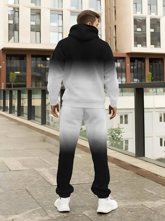 Herren Freizeit Polyester Kapuzen-Trainingsanzug mit Farbverlauf-Druck, Strickgewebe Langarm Hoodie und Jogginghose Set mit leichtem Stretch