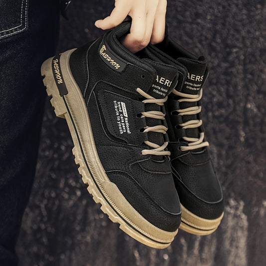 Herren High Top Skateschuhe, rutschfeste, strapazierfähige Sneaker für Outdoor-Street-Walking, Reisen, Freizeitaktivitäten | Herren Retro Trendige Kunstleder-Sneaker
