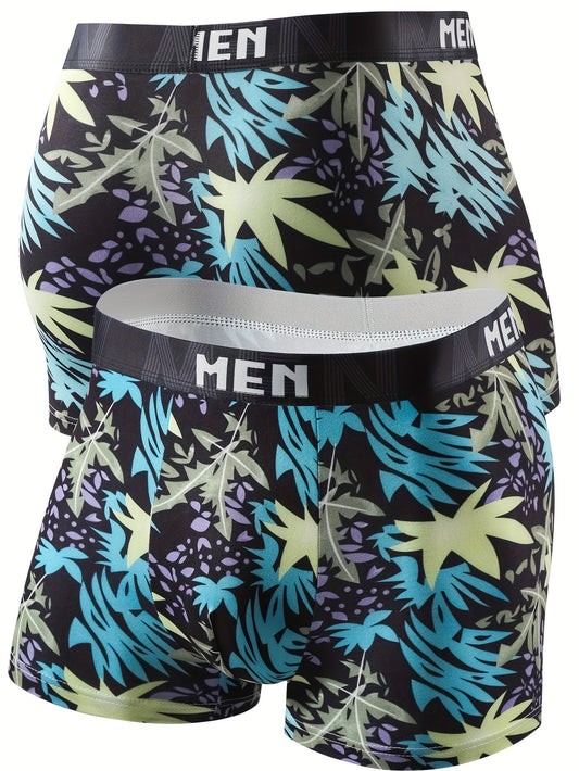10er-Pack Herren-Boxershorts mit Blattmuster - Aseptisch, Atmungsaktiv & Schnelltrocknend, Weiche Freizeit-Sportshorts mit Schleifendetail - Polyester-Mischung
