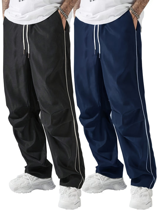 2er-Set Herren Freizeithosen mit Kordelzug und Geradem Bein - Polyester, Lockerer Sitz für Outdoor- & Freizeitaktivitäten