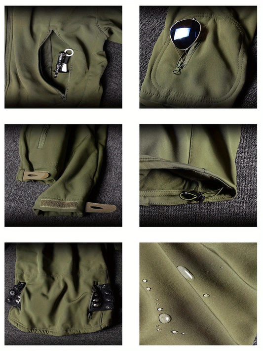 Herren Sharkskin Softshell Outdoor Warm 2-teiliger Anzug für Sport und Arbeit - Wasserabweisend - Herbst/Winter Kapuzenjacke und Hosen Set mit Taschen