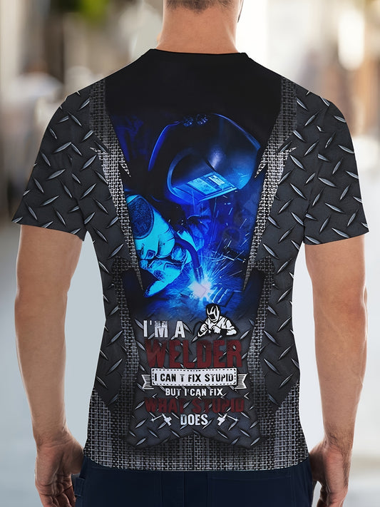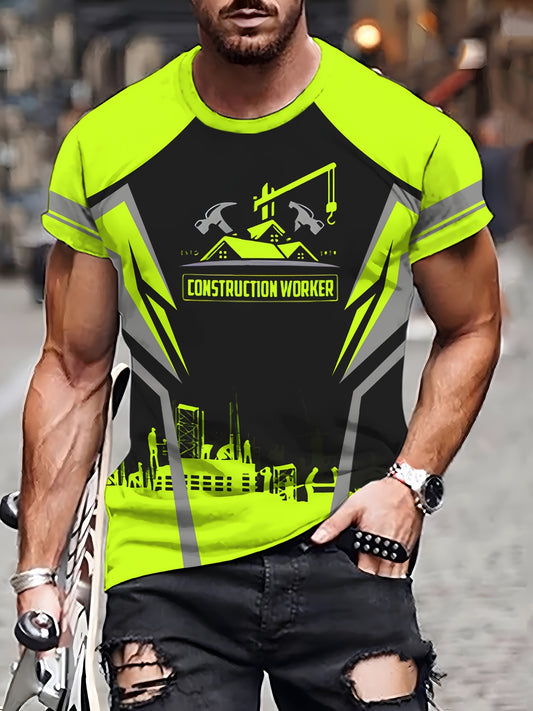 Herren Freizeit-T-Shirt mit Rundhalsausschnitt und Einzigartigem Bauarbeiter-Druck - Leichtes, Atmungsaktives Polyester für Sommerkomfort