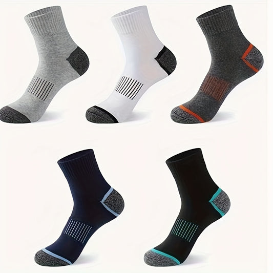 5 Paare Herren Patchwork Freizeit Arbeits Sport Socken Feuchtigkeitsableitende Bunte Gepolsterte Crew Socken Athletic Wandern Socken Für Männer