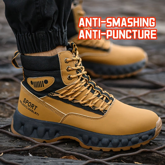 Herren High-Top Arbeitsstiefel mit Stahlkappe - Anti-Schlag & Durchstichfest, Modische Freizeit-Bergmanns- & Baustiefel, Schnürung, Ganzjahres