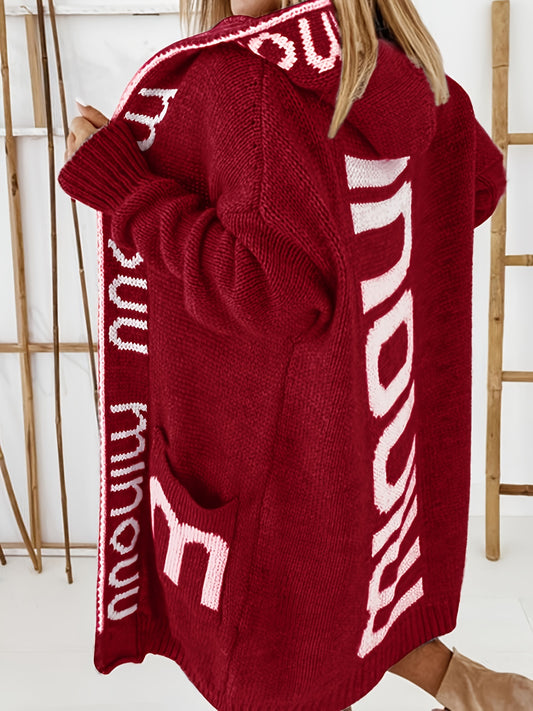 Stylischer Damen Strick-Cardigan mit Buchstabenmuster - Gemütlicher Kapuzenpullover für schicke Herbst- und Wintermode