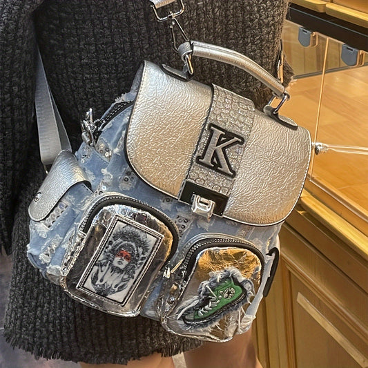 Trendiger Denim-Rucksack - Geräumiges Design mit Stickerei und mehreren Taschen - Vielseitig für Reisen & Alltag