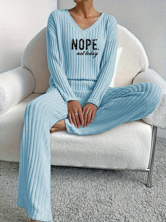 Zweiteiliges Chic-Outfit - Weiches Rippstrick-Langarmshirt mit V-Ausschnitt und überschnittenen Schultern & Slim Fit Hose mit schrägen Taschen und elastischem Bund - Lässiges, bequemes und vielseitiges Damen-Kleidungsset