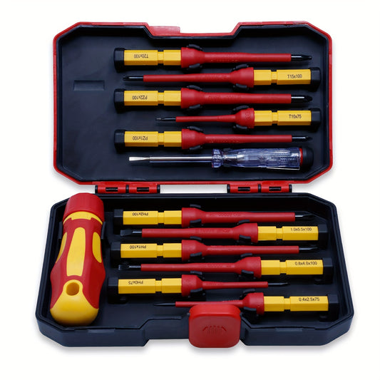 13-teiliger VDE-isolierter Schraubendreher-Satz, magnetischer Schraubendreher mit Spannungsprüfer, Schlitz, PH, PZ und Torx, mit austauschbaren Klingen