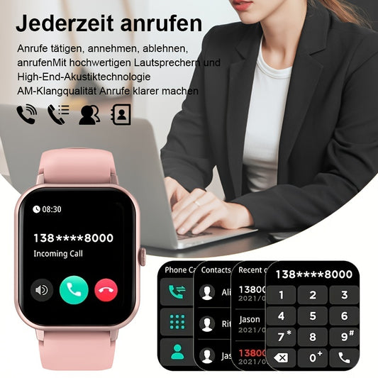 Smartwatch mit 4.65 cm großem Voll-Touchscreen, Text- und Anruffunktionen, über 100 Sportmodi, Schrittzähler, Kalorienzähler, wasserdicht, kompatibel mit Android und iOS
