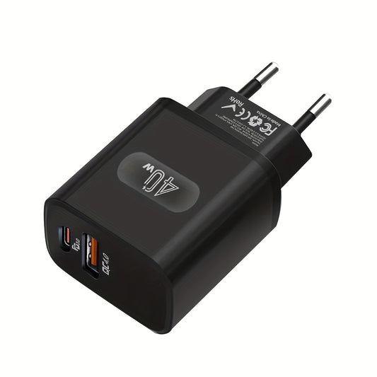 GEUMXL 40W Doppel-Port USB-C Wandladegerät mit PD 3.0 & QC 4.0, Schnelllade-Netzteil, Universelle Kompatibilität für iPhone 11/12/13/14/15/Pro Max, iPad Pro, AirPods, Samsung, Xiaomi, Oppo, Vivo - Europäischer Stecker